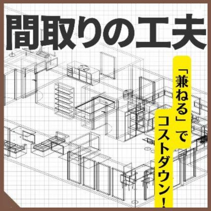 屋根の形状は片流れか切妻に、家の形状は凹凸をなくして四角形にして余計な手間と部材を減らします。家の形状をシンプルにすると、メンテナンス費用も削減でき雨漏りのリスクも下がります。室内もシンプルにすると間仕切りと建具を減らせてコストダウンになります。