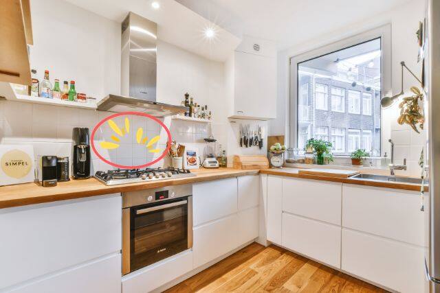 キッチンの正面や側面に、床から天井までを壁にする袖壁、床から途中までを壁にする腰壁があります。来客時などに、キッチンを見えにくくするために袖壁や腰壁を付けることがあります。これらは、目隠しだけでなく、水・油跳ね対策にもなります。